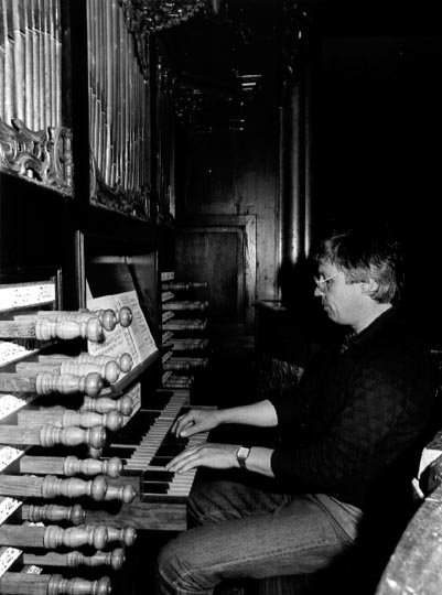 Orgelbaumeister Paschen an der fertiggestellten Orgel