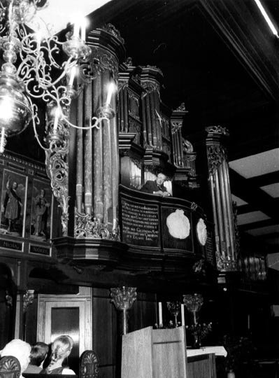 Kirchenmusikdirektor Friedrich Nehmitz bei der Erläuterung der Orgel vor dem 1. Konzert